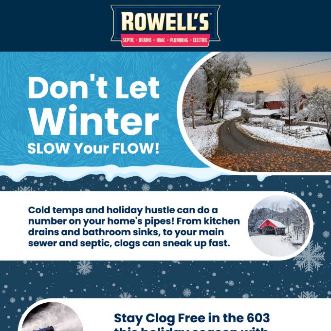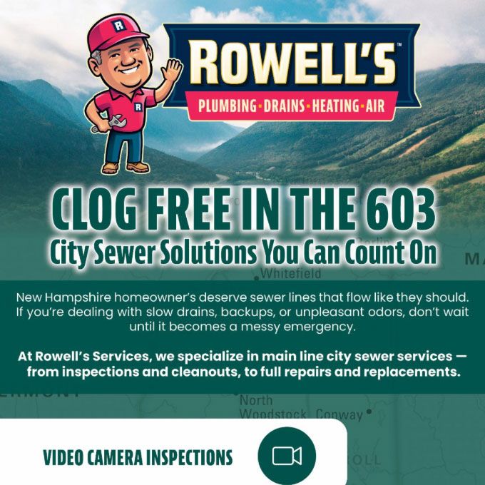"Friendly As Can Be Since 1983!" When you need help with your plumbing, drains, heating, cooling or electrical in Hooksett, you can always rely on Rowell's Services! Call us now or book online!